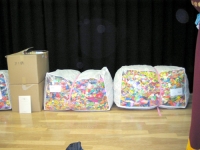昨年にひきつづき、広島の高校生平和ゼミナールの生徒さんと先生方、またあらたに東広島市立志和中学校のボランティアの生徒さん、PTAメンバー、校長先生をはじめとする先生方、西志和農園の園生の方々約70名、施設長さんと職員の皆さん、また個人でボランティアにかけつけてくださった方々と総勢100名をはるかにこえる参加があり、にぎやかで楽しい作業でした。昨年は今年の量の半分であったにもかかわらず、平和ゼミの生徒さんと先生方、約25名だけでしたから歯をくいしばっての4時間でしたが、今回は1時間あまりで片付いてしまいました。また作業の後、参加者全員で歌を歌ったり踊ったりと心に残る交流会を持つことができました。